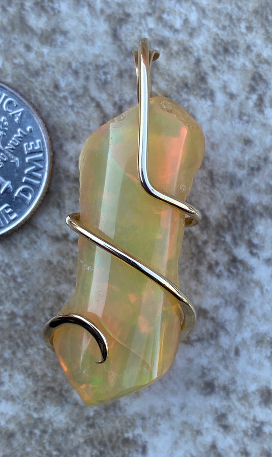 Ethiopian Opal in 14kt Gold Tension Wrapped Pendant