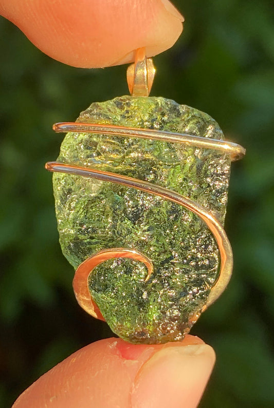 Moldavite in 14kt Gold Tension Wrapped Pendant