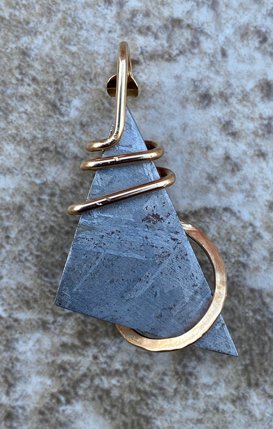 Sliced Meteorite in 14kt Gold Tension Wrapped Pendant