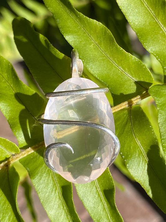 Faceted Rose Quartz in Sterling Silver Tension Wrapped Pendant