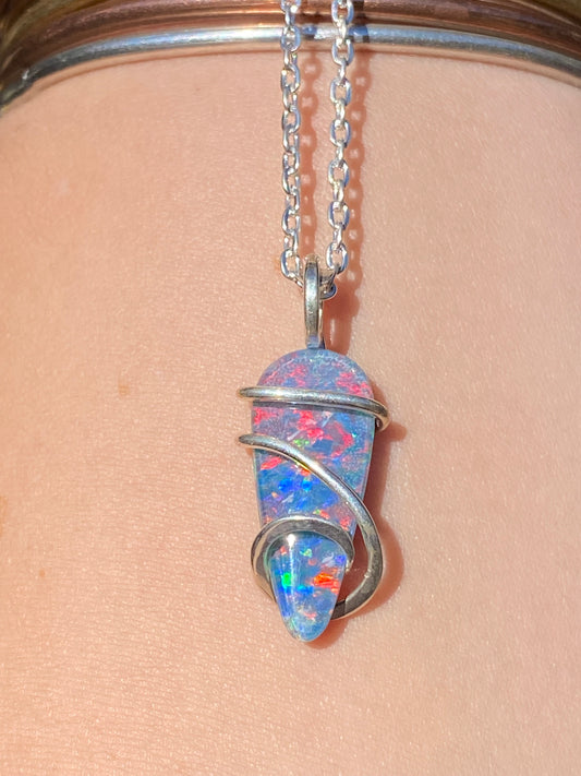 Opal Triplet in Sterling Silver Tension Wrapped Pendant