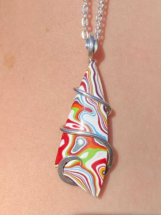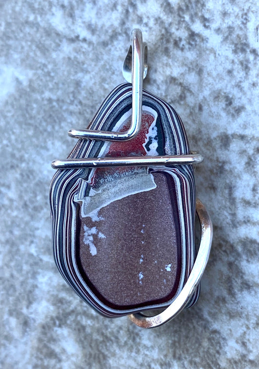 Fordite in Sterling Silver Tension Wrapped Pendant