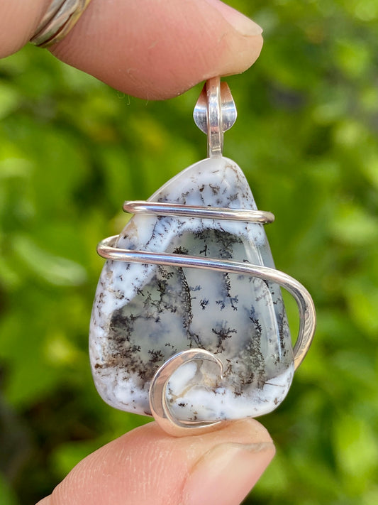 Dendritic Agate in Sterling Silver Tension Wrapped Pendant