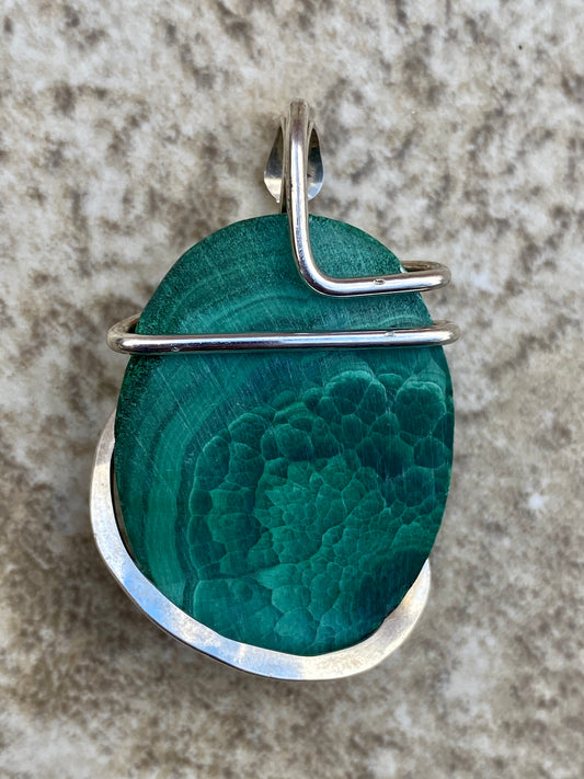 Malachite Cabochon in Sterling Silver Tension Wrapped Pendant