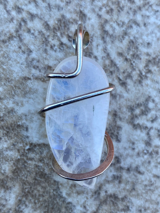 Moonstone Cabochon in Sterling Silver Tension Wrapped Pendant
