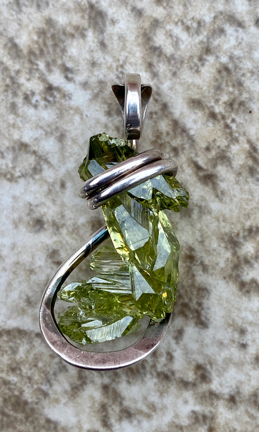 Polish Green Zincite in Sterling Silver Tension Wrapped Pendant