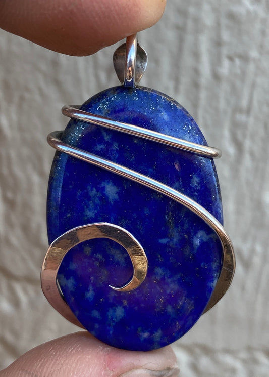 Lapis Lazuli Cabochon in Sterling Silver Tension Wrapped Pendant
