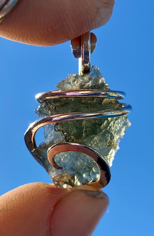 Moldavite in Sterling Silver Tension Wrapped Pendant
