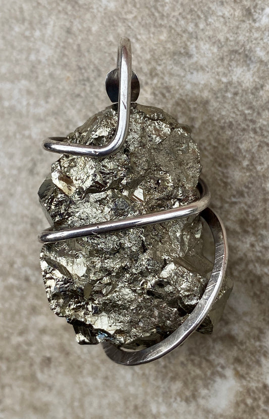 Pyrite Nugget in Sterling Silver Tension Wrapped Pendant