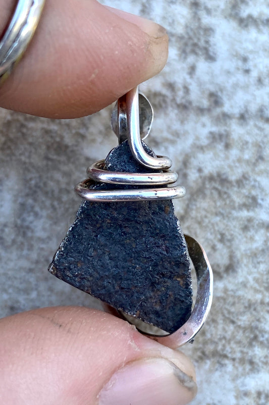 Sliced Meteorite in Sterling Silver Tension Wrapped Pendant