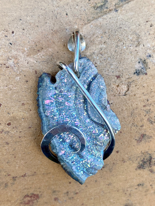 Titanium Infused Druzy in Sterling Silver Tension Wrapped Pendant